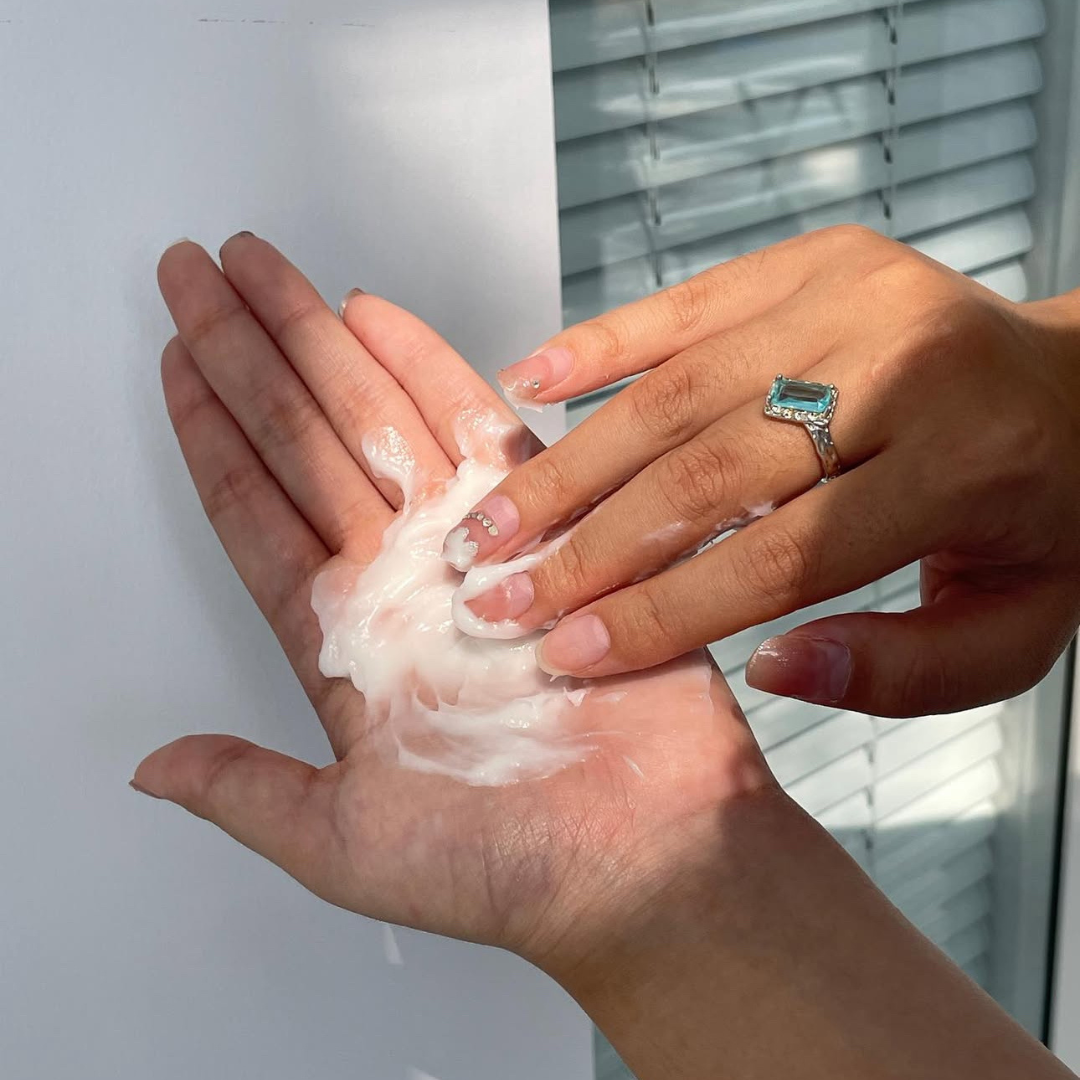 -Aplicar 2-3 dosis (ajustando según el largo y la densidad del cabello), emulsionar el producto con las manos hasta formar una pasta blanca para una mejor absorción